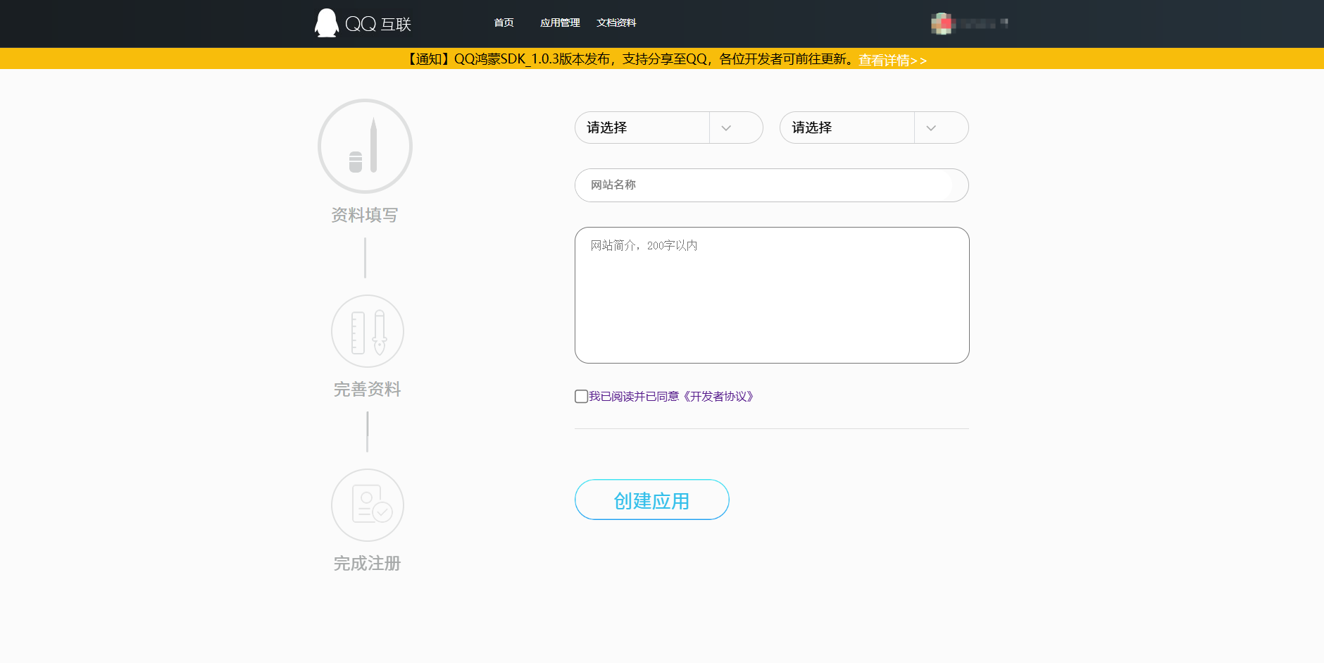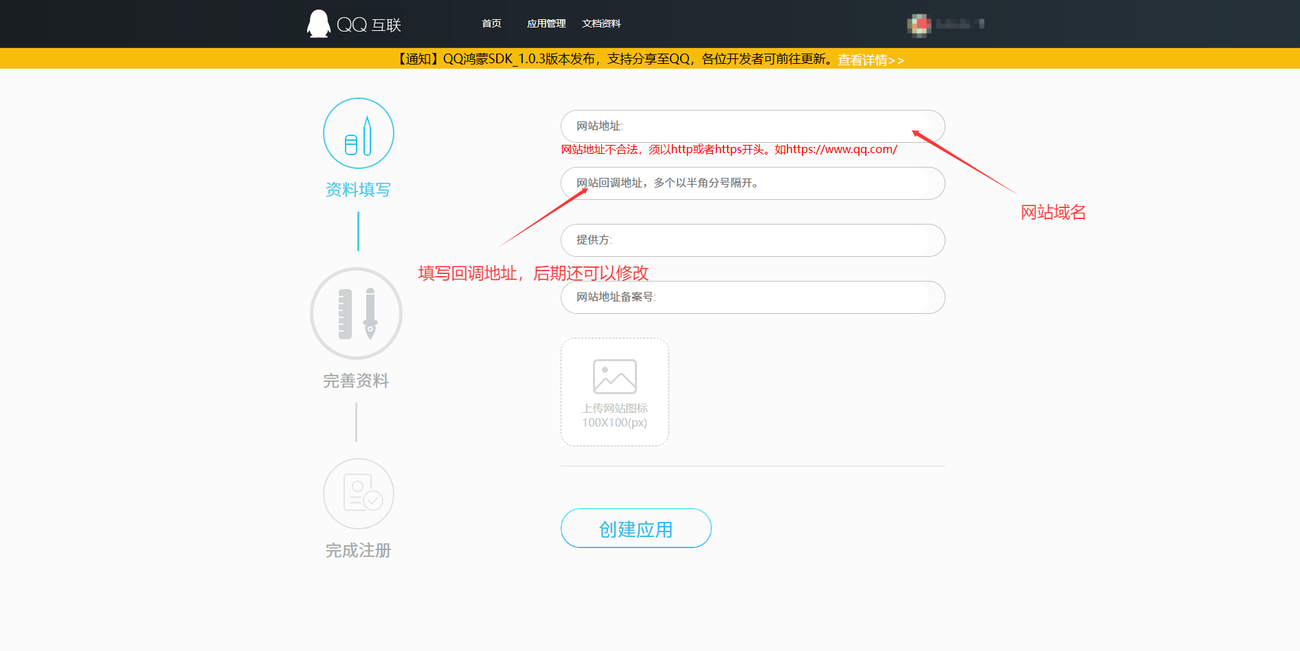 2. 填写应用信息