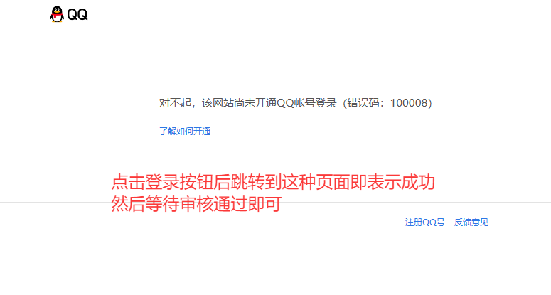 恭喜你!点击登录按钮成功跳转到QQ页面,然后我们就只需要等待QQ官方的审核通过了。